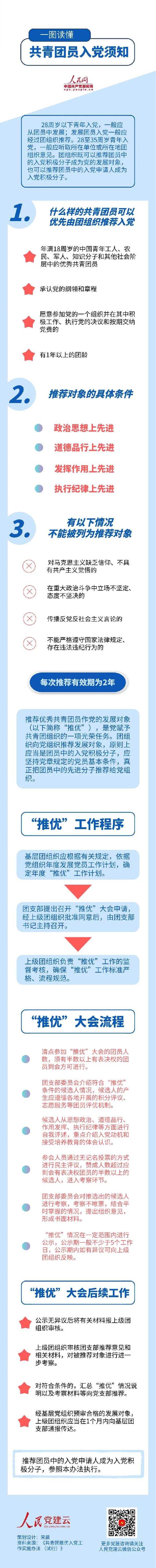 近日,“共产党员”、“人民党建云”等微信公众号分别发布了“共青团员入党须知”一图读懂,对2019年印发的《共青团推优入党工作实施办法(试行)》相关重点内容进行了解读。